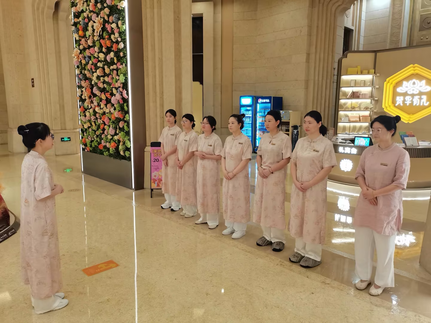 灵山商品销售部梵宫班组是一支清一色的“巾帼队伍”。班组始终以“极致服务、文化赋能”为宗旨,将女性的细致耐心特质与文旅服务专业性深度融合,在岗位上履职尽责、精益求精。为打造沉浸式消费体验,班组精研服务环境,精心打造打卡花墙、定制专属香氛系统,以博物馆级的陈列标准严苛把控每一处细节;为传递文化温度,班组深耕讲解赋能,通过生动鲜活的文化解读,让游客的购物过程升级为寓教于乐的文化熏陶之旅;为锤炼过硬服务本领,班组锚定“学习型、创新型”团队建设目标,常态化开展业务培训、技能竞赛与情景演练,量身定制服务方案,全方位展现新时代文旅服务者的高素质风貌。